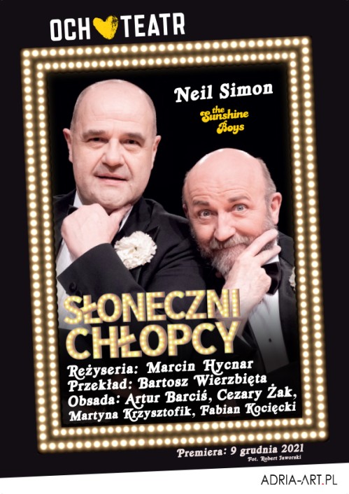 „Słoneczni chłopcy” to błyskotliwa historia dwóch zapomnianych aktorów, którzy po latach sukcesów, ale też narastających nieporozumień, stają przed perspektywą ostatniego wielkiego występu. Kultowa komedia wraca z Cezarym Żakiem i Arturem Barcisiem w rolach głównych.